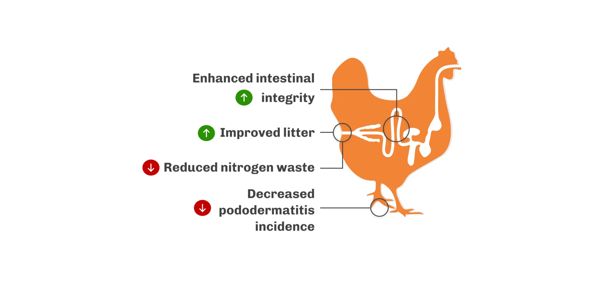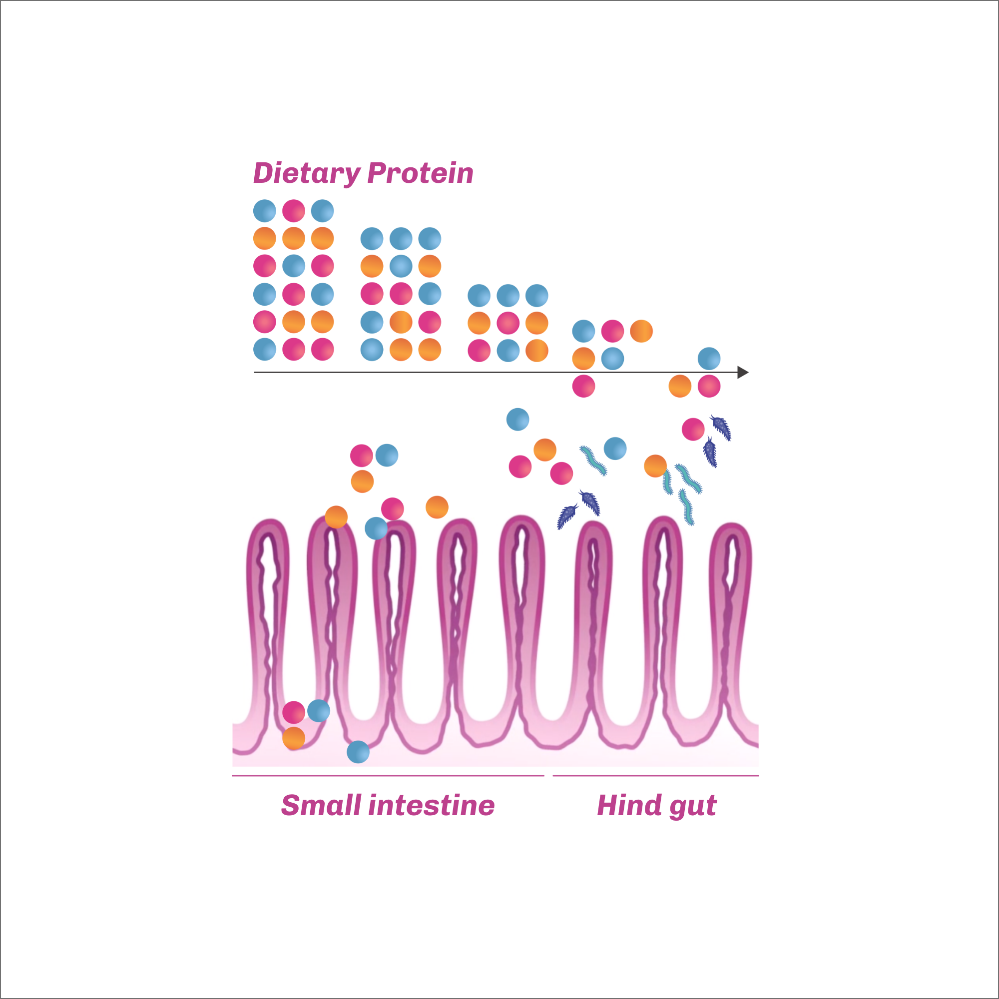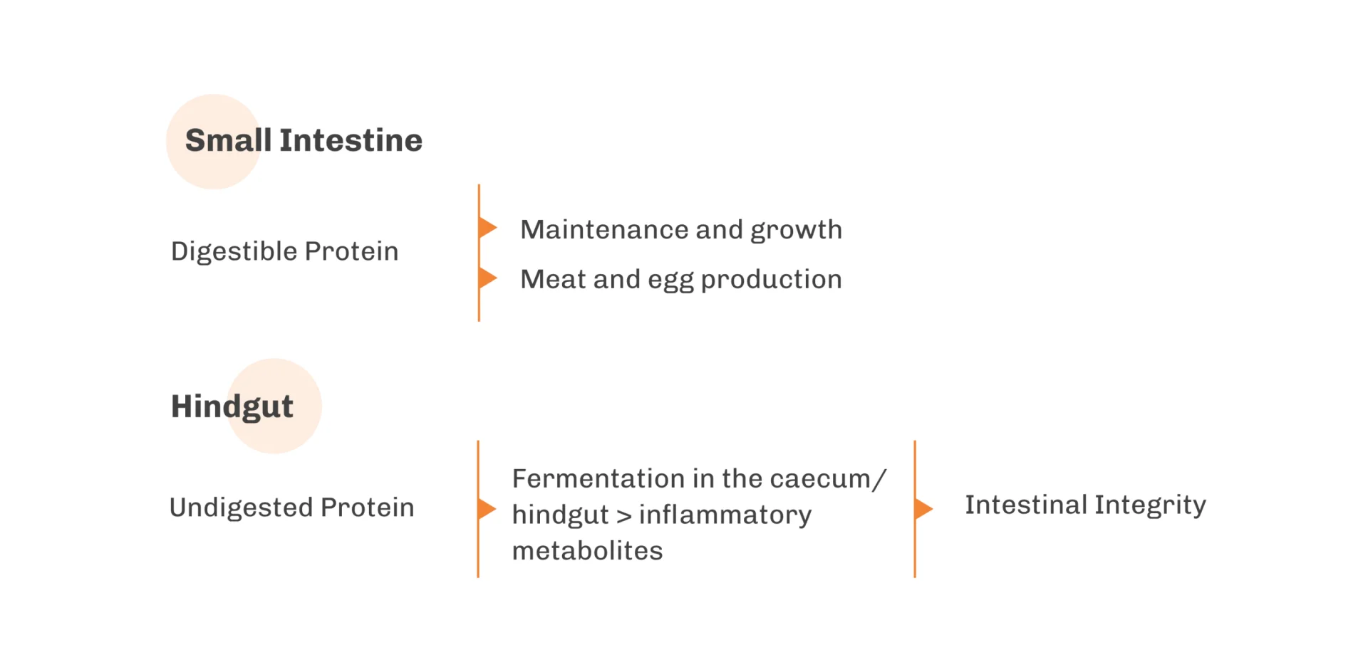 Effective management of feed protein flow requires maximizing protein digestion — releasing small peptides that can be absorbed by the bird to support performance — while minimizing undigested protein in the hindgut, which otherwise serves as a substrate for pathogenic bacteria and compromises intestinal integrity.