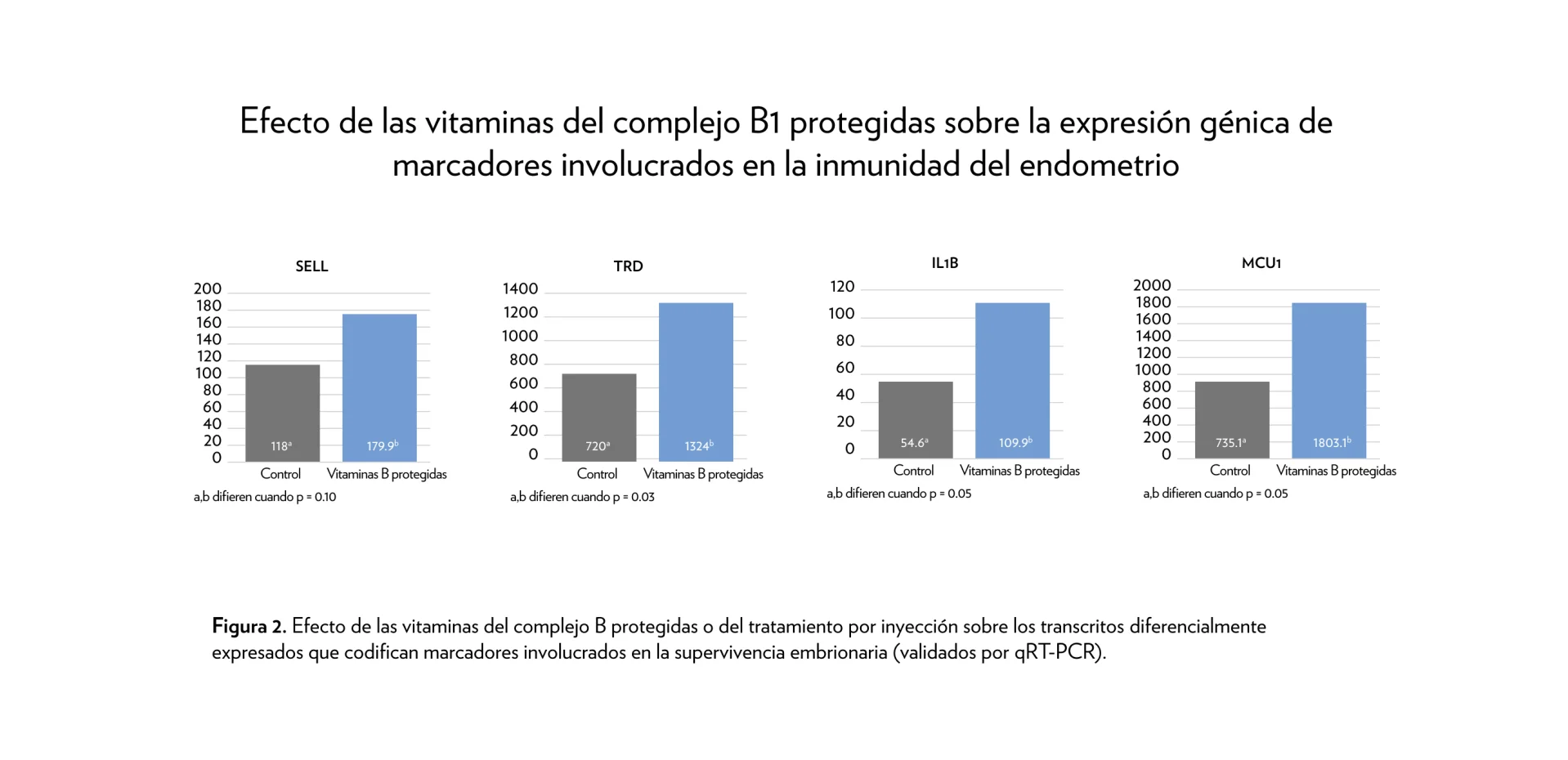 Los análisis nutrigenómicos también revelaron una mayor expresión de genes clave asociados con una mejor calidad ovocitaria y una ovulación más temprana (RGS2, INHBA y FOLR2), mientras que los genes SELL, TRD, IL1B y MUC5B se asocian con una mejor supervivencia embrionaria.