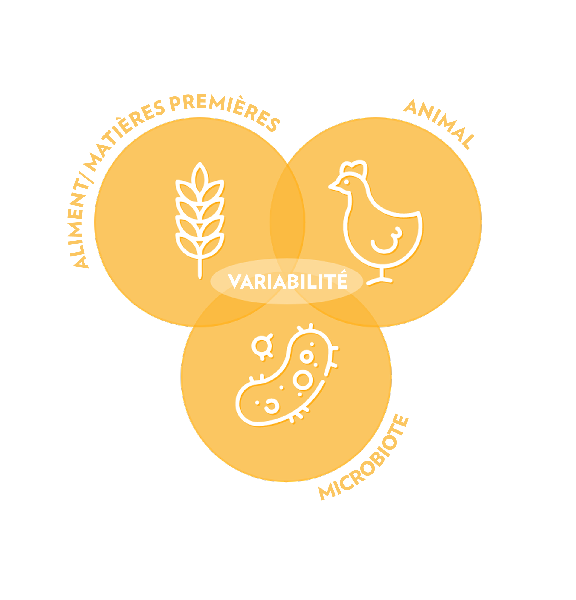 - Variabilité de la digestibilité : âge, temps de transit, santé, etc.